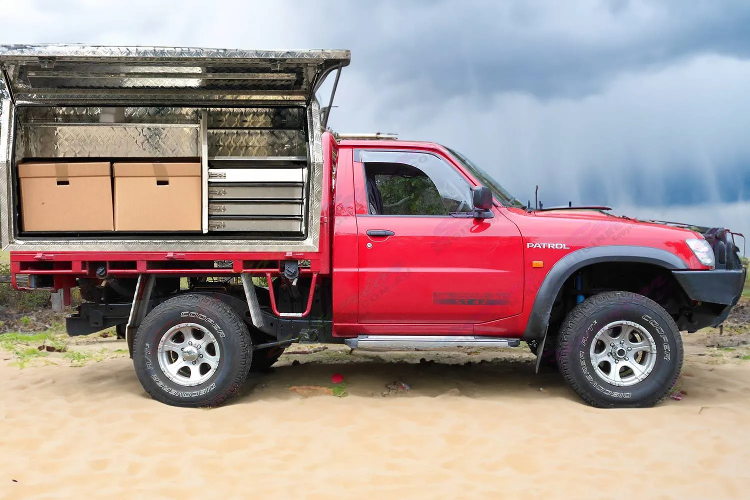 Made from 2mm Aluminium Checker Plate with fully welded seam.