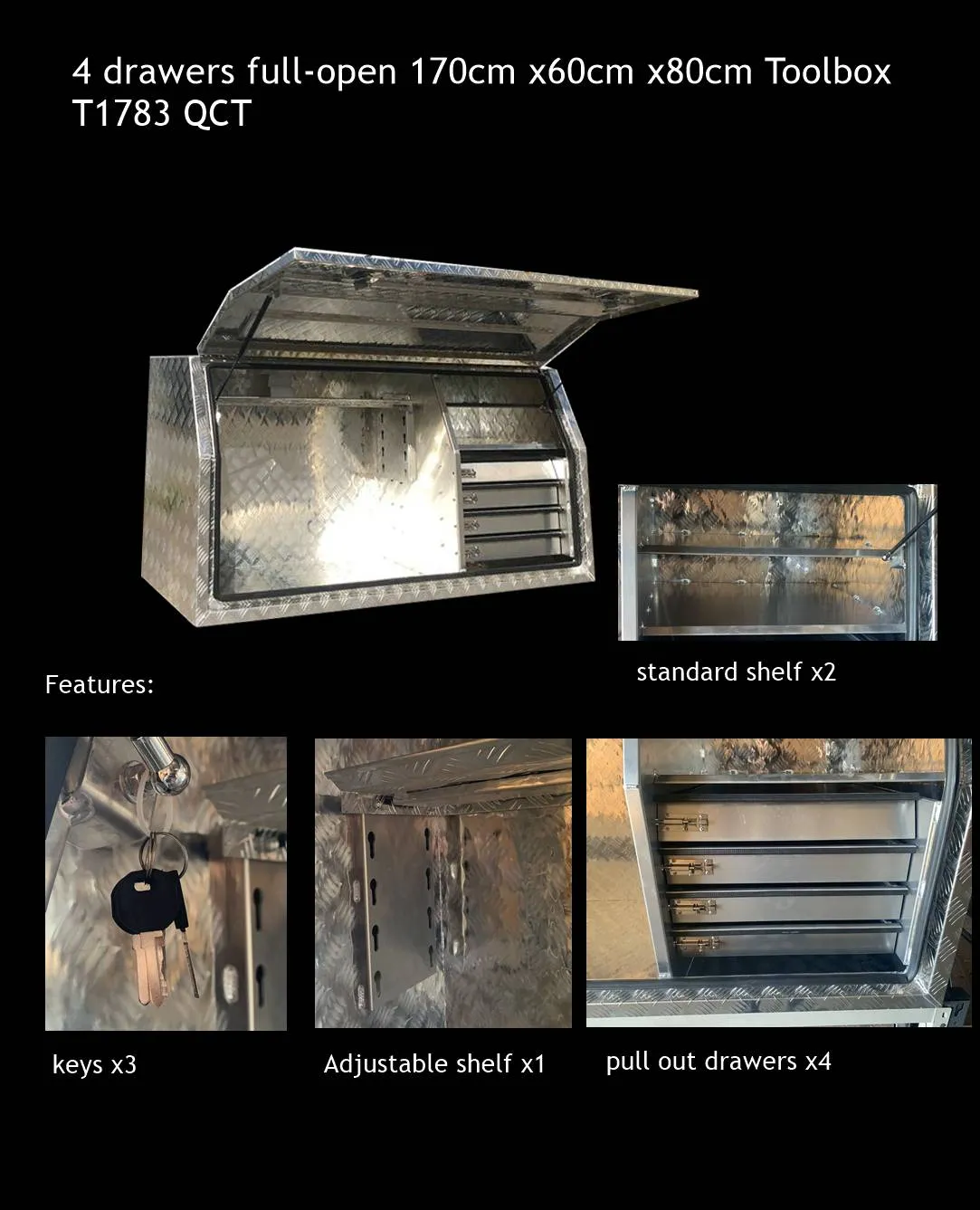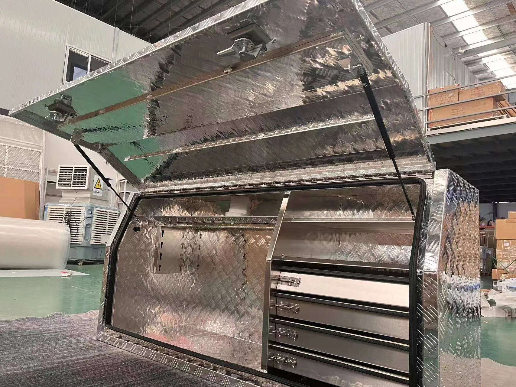 Silver Aluminium Checkerplate Storage Toolbox With 4 Interal Drawer System