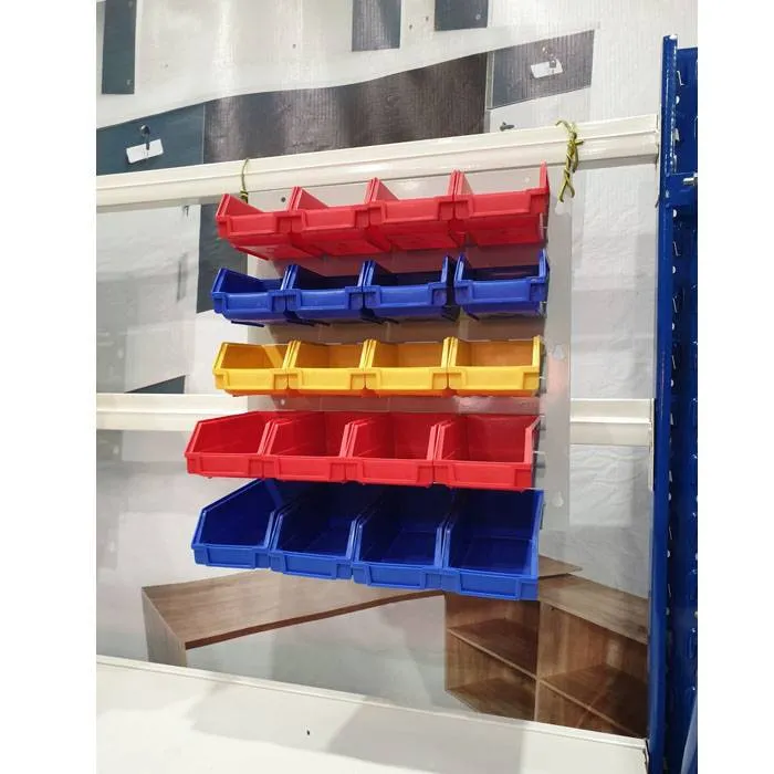 The storage bins can be nested, stacked or hung on the louvred panel wall mount depending on use.