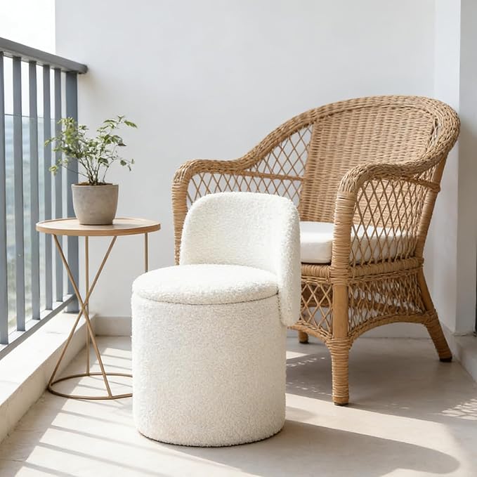 SkyTeck Vanity Ottoman Chair with Storage Stool for Vanity (White)