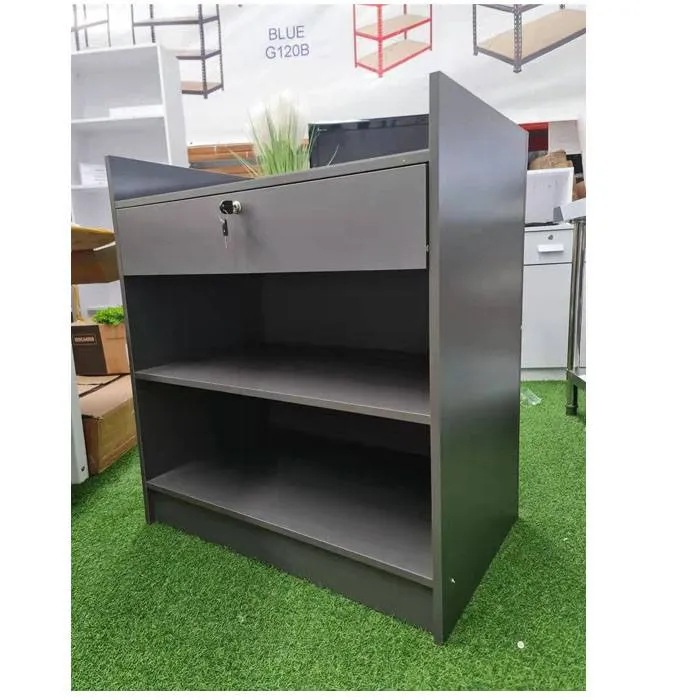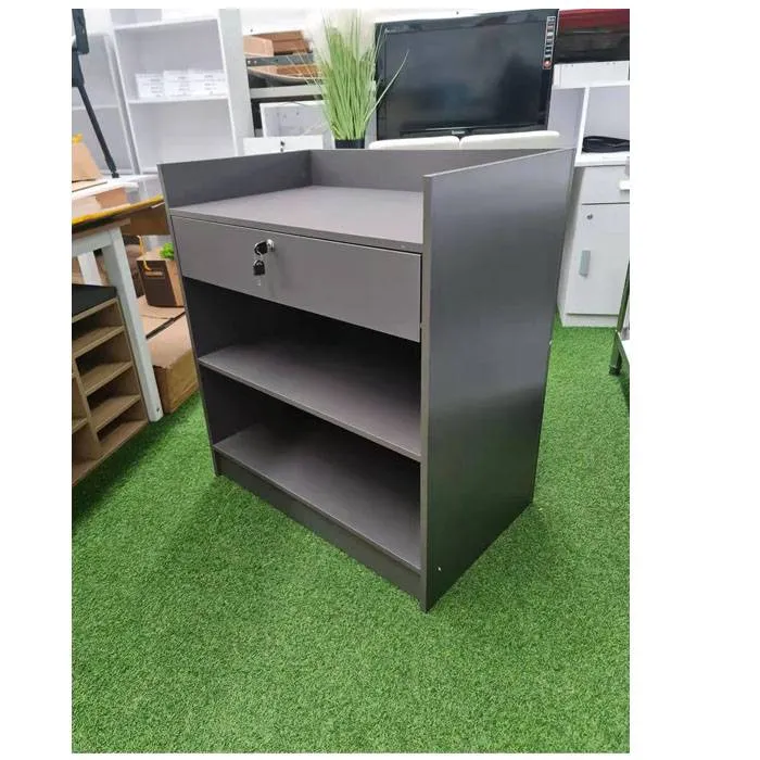 80CM CHARCOAL COMPACT RECEPTION DESK COUNTER WITH DRAWER & 2 SHELVES
