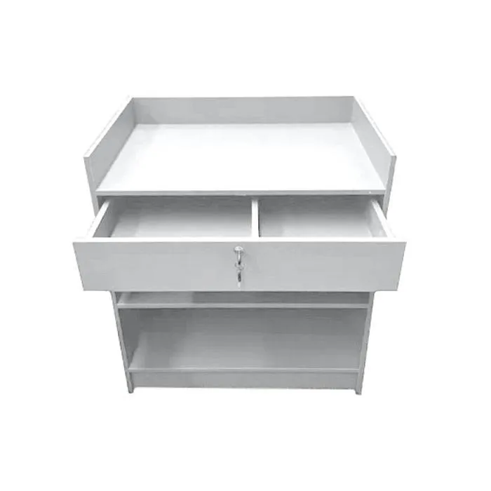 80CM WHITE COMPACT RECEPTION DESK COUNTER WITH DRAWER & 2 SHELVES