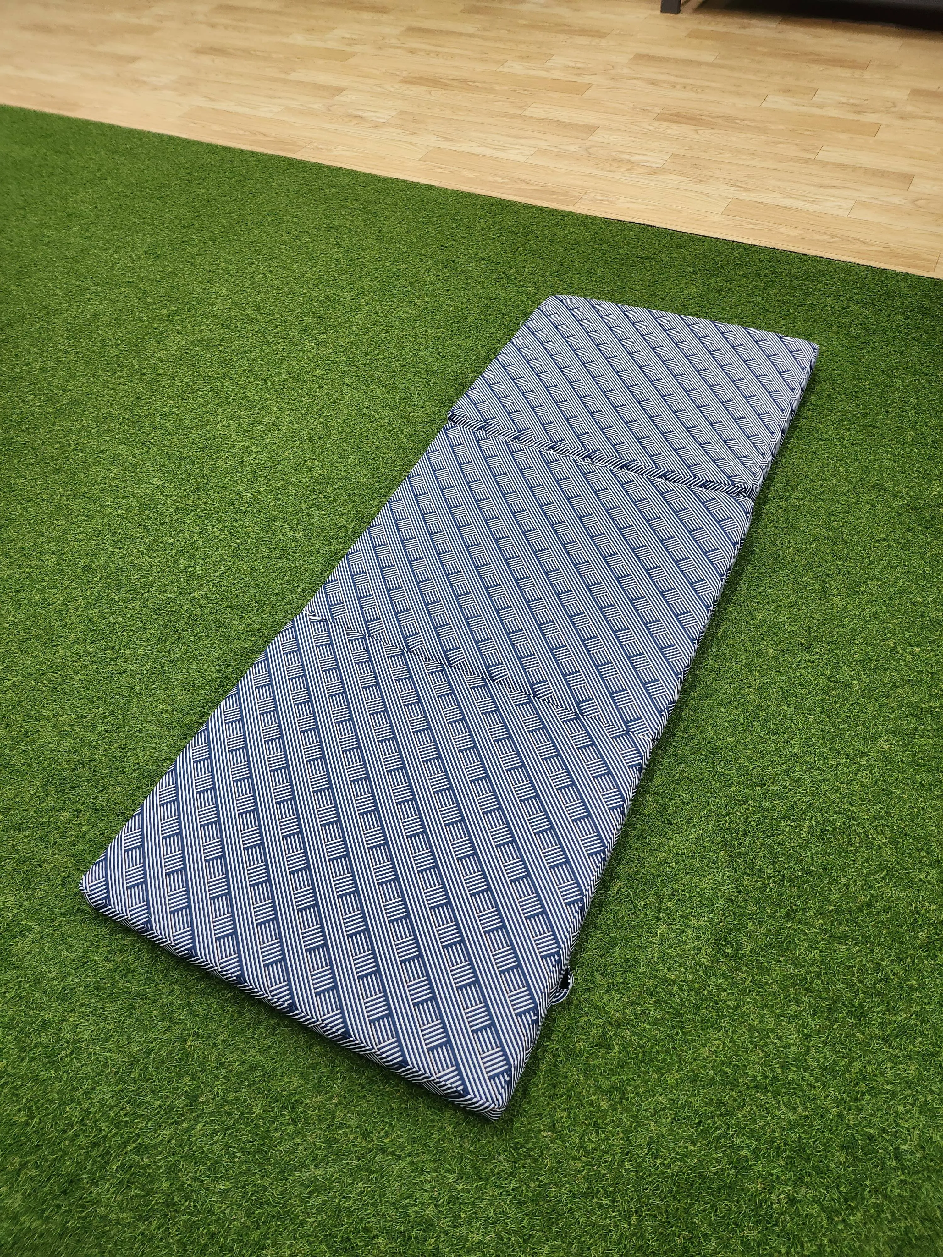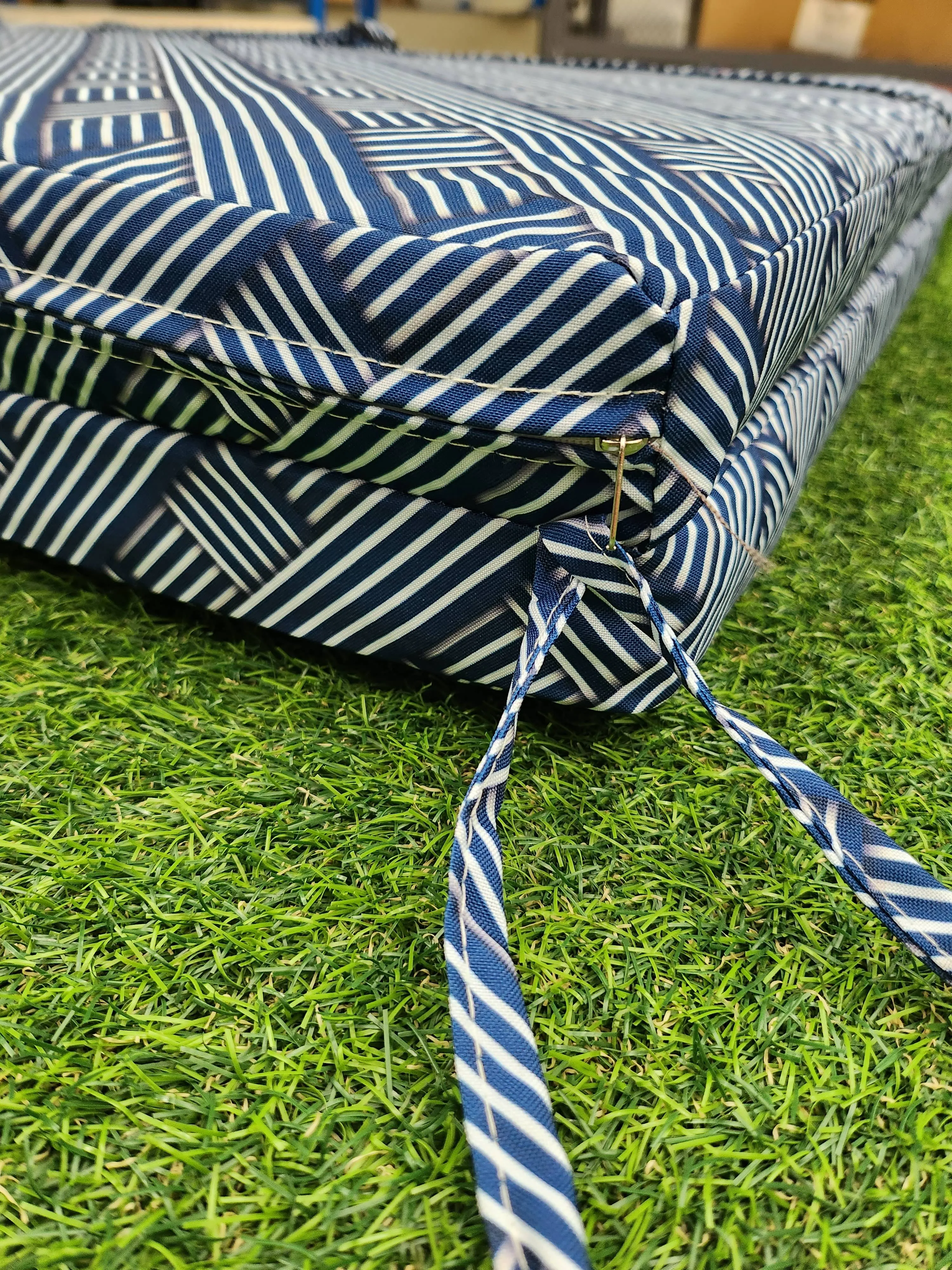 BLUE & WHITE WATER-PROOF REPLACEMENT SUN LOUNGE CUSHION COVER ONLY