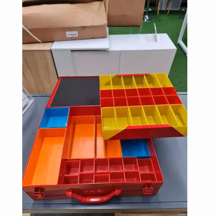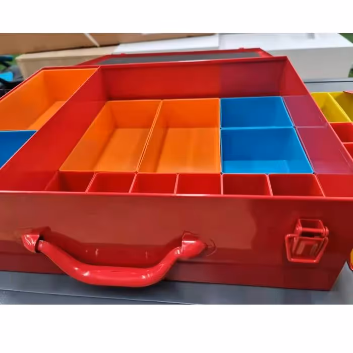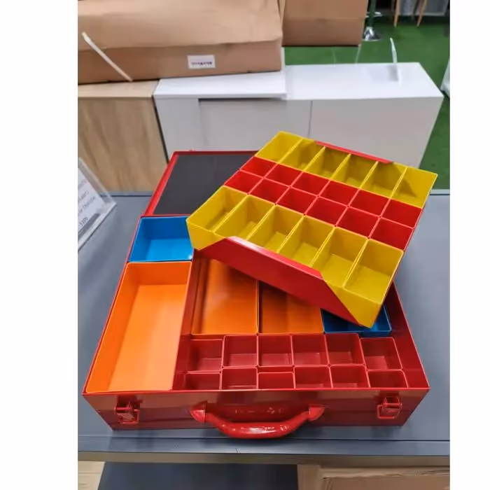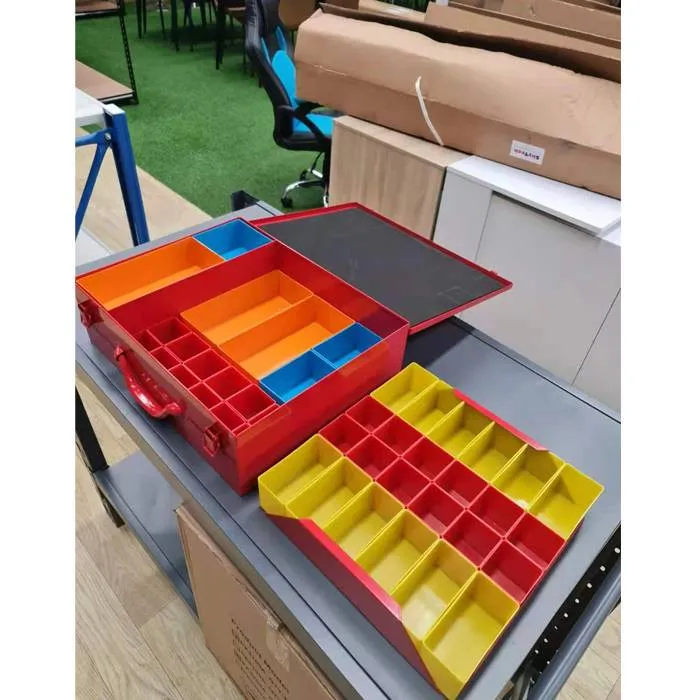 LARGE 2 TIER METAL COMPARTMENT SCREW ORGANIZER TOOL BOX RED