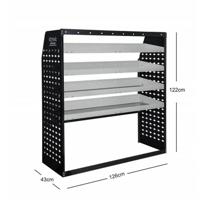METAL VAN SHELVING 4 TIER SHELF COMPLETE UNIT 126CM X 122CM X 43CM VS008