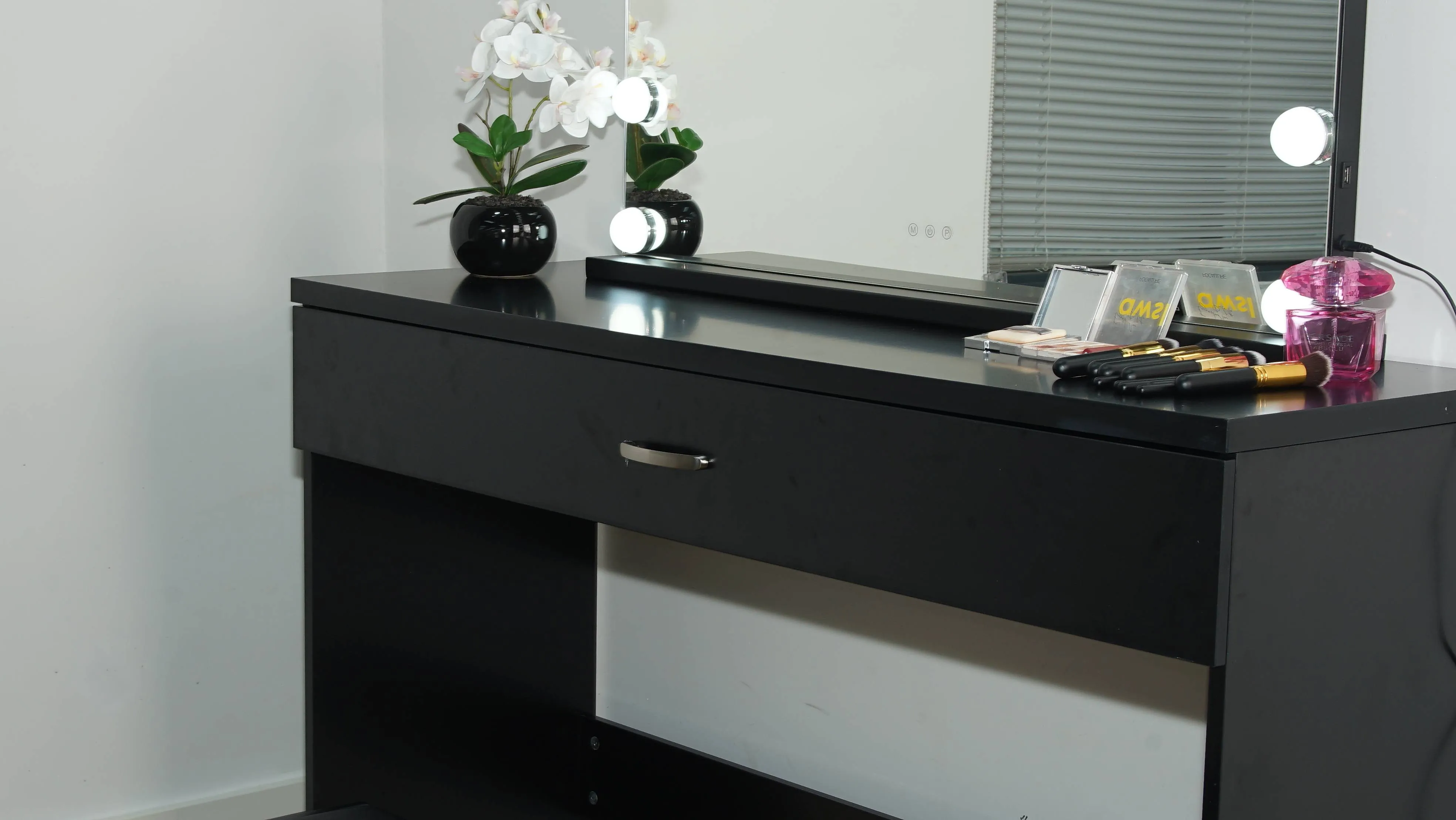 BLACK MAKE-UP DRESSER TABLE WITH SINGLE DRAWER & PULL OUT CHAIR TL-DS03K