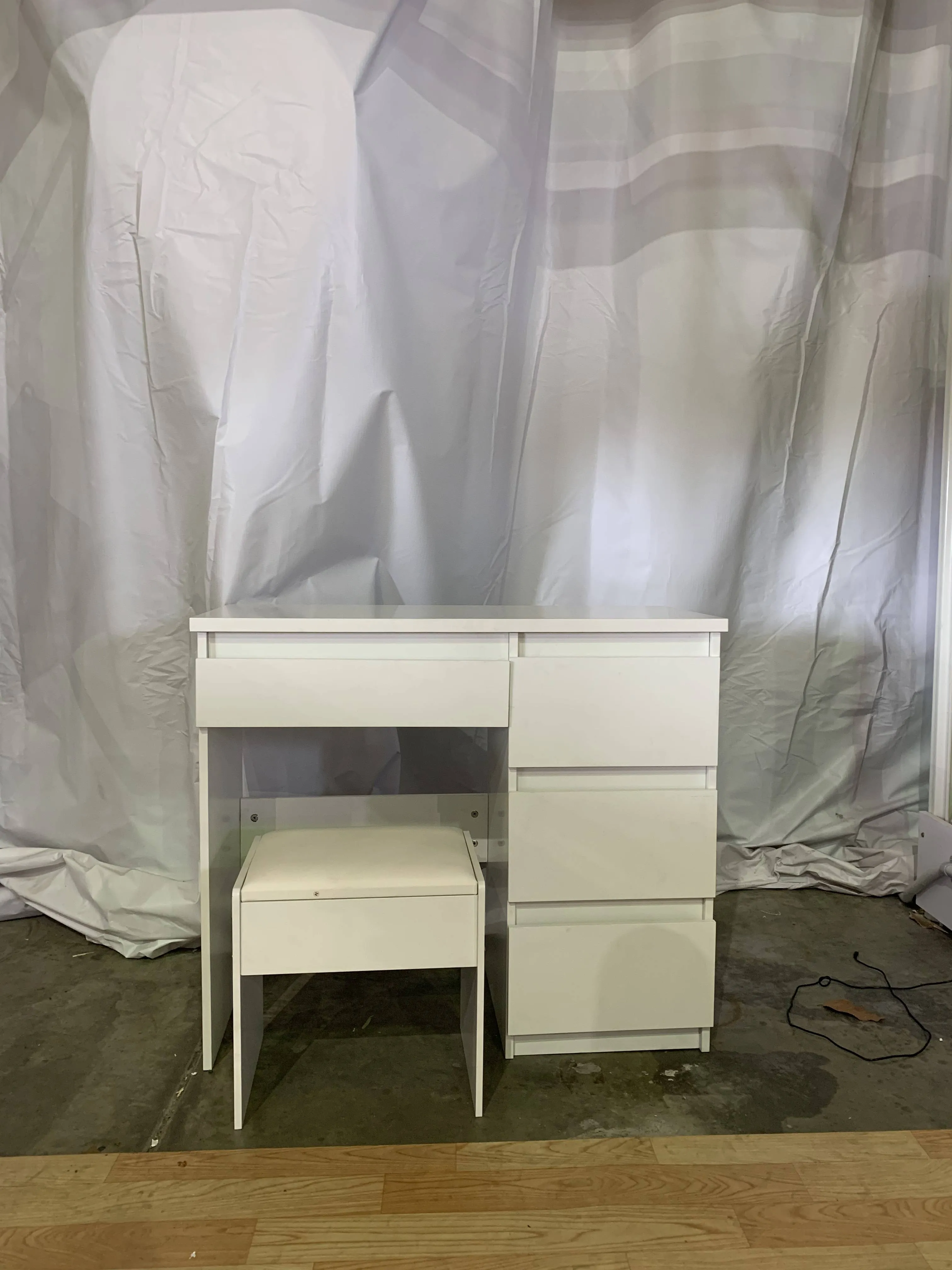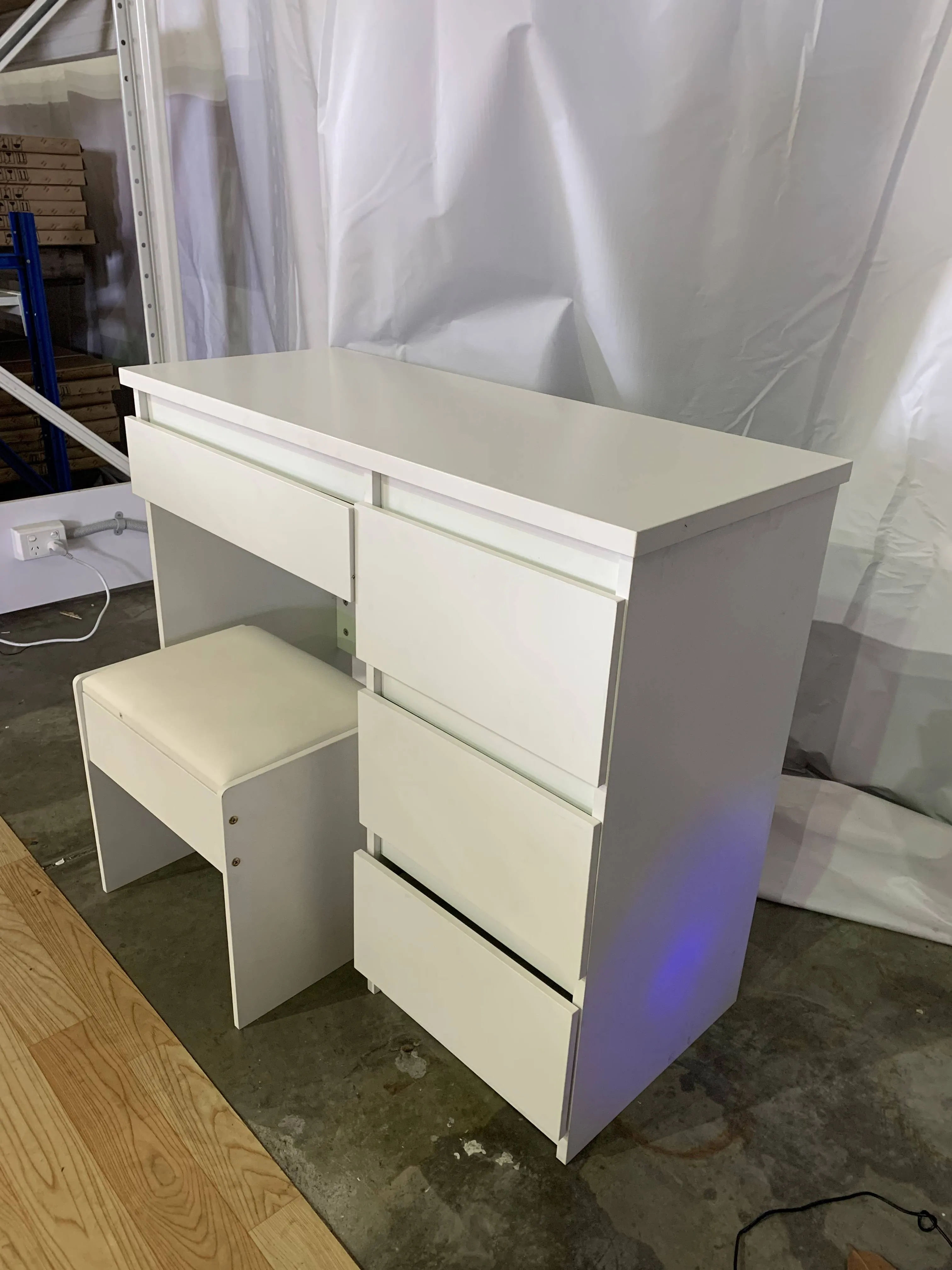 WHITE MAKE-UP DRESSER TABLE WITH 4 DRAWERS & PULL OUT CHAIR TL-DS05N