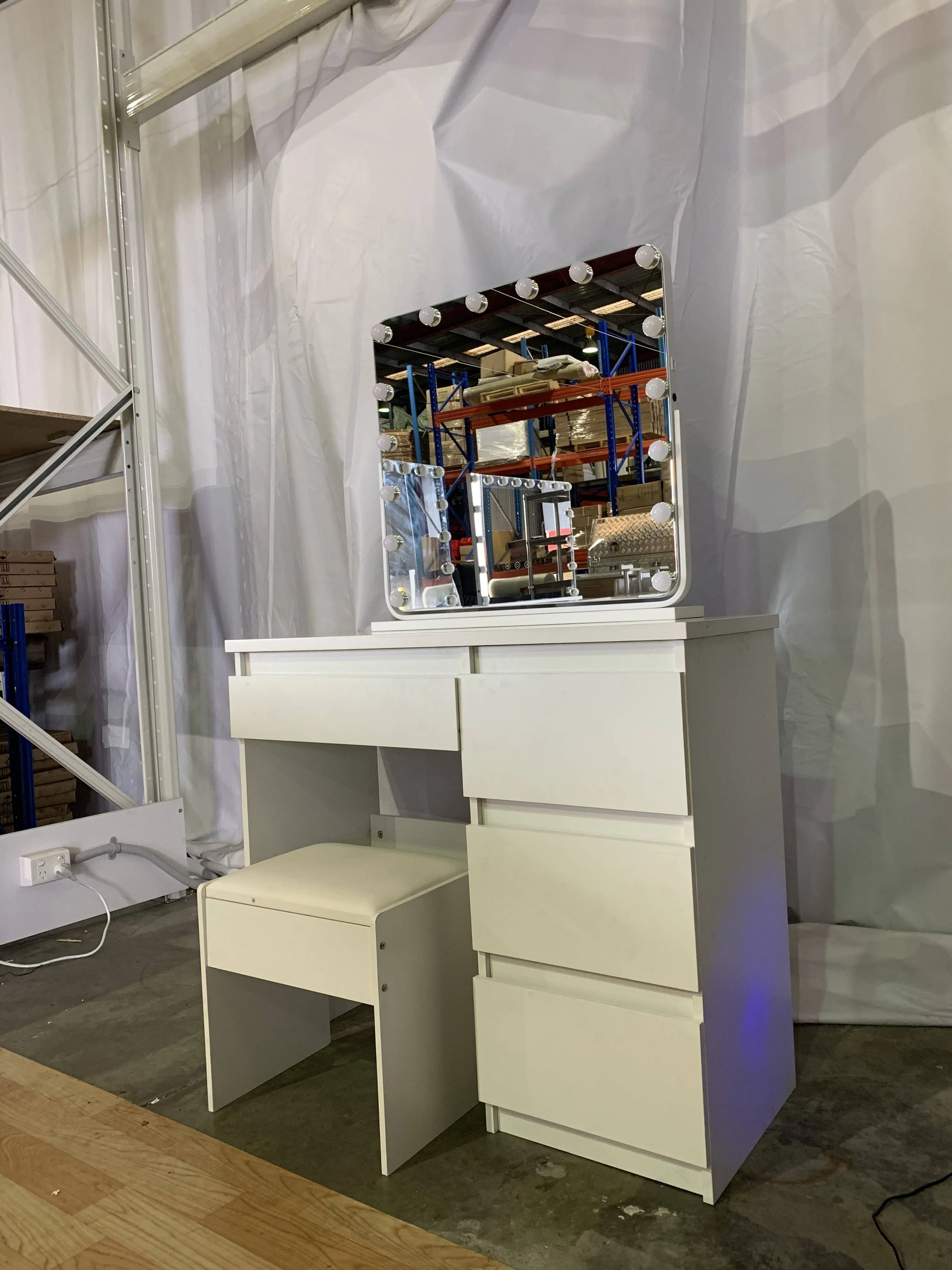 WHITE MAKE-UP DRESSER TABLE WITH TILT ADJUSTABLE LED MIRROR WITH DRAWERS & PULL OUT CHAIR KL-DS05N