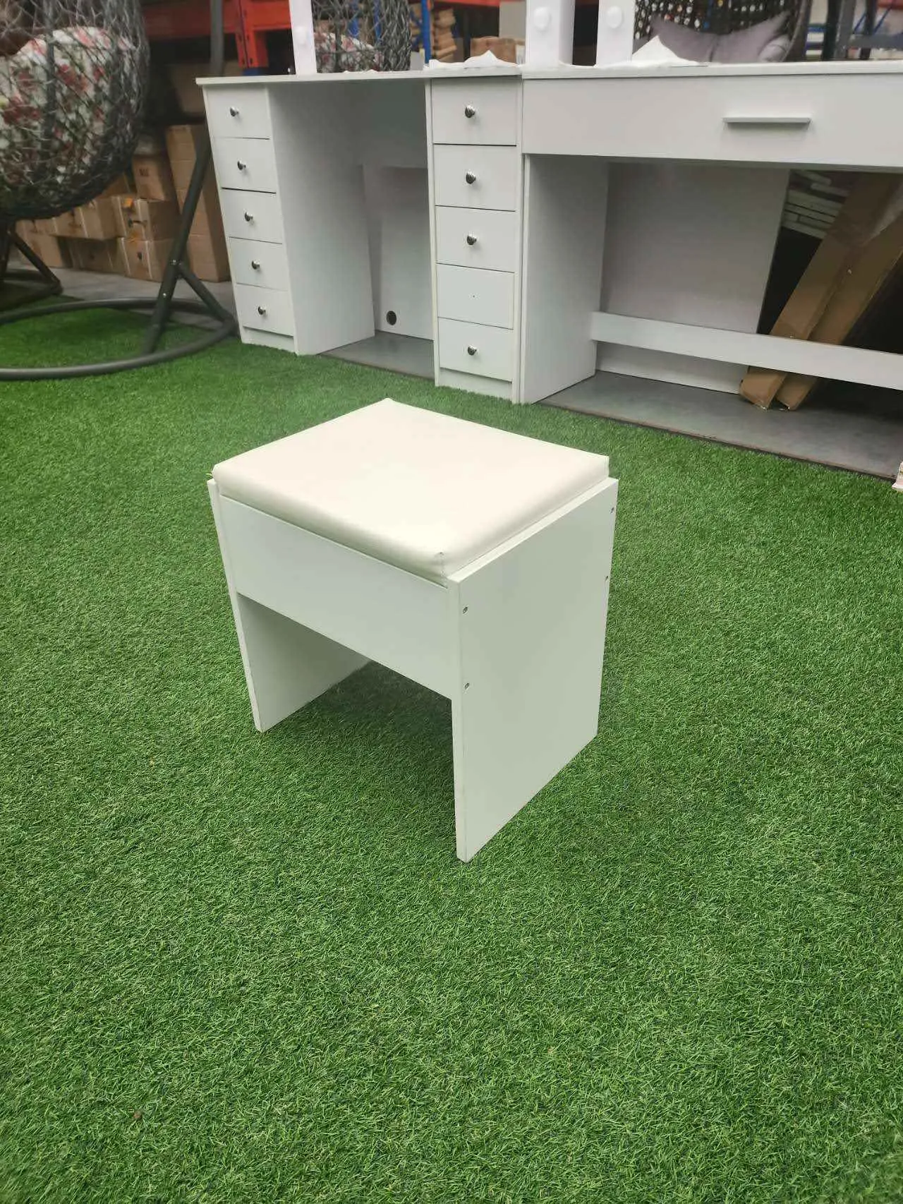 This compact Vanity Make-Up stool small chair that fits perfectly underneath the table to save space.